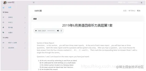 登陆后的用户可以在此处进行听力的测试