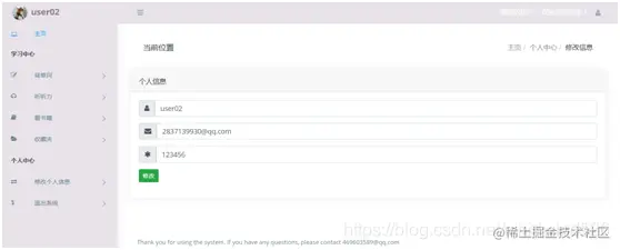 - 用户可以自行修改自己的名字,邮箱以及密码
