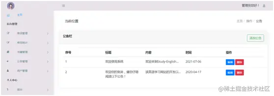 - 网站首页会展示管理员发布的公告