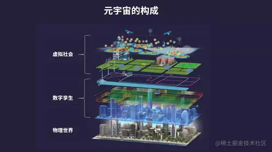 中间层以数字孪生技术为核心,为现实世界在虚拟世界中生成数字孪生镜像,并且将虚拟世界的变化反映在真实世界中,基于此形成一个穿越于虚拟与现实之间的“虫洞”。
