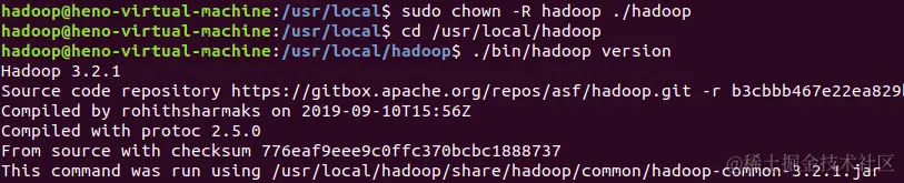 sudo tar -zxf ~/下载/hadoop-3.2.1.tar.gz -C /usr/local