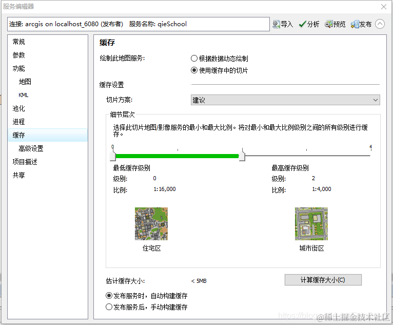 点击缓存 -》 使用缓存中的切片 -》 建议 -》 分析 -》 发布-》