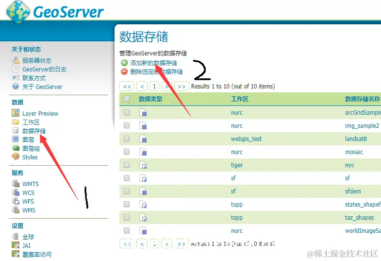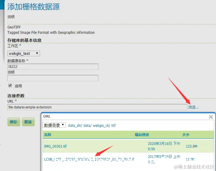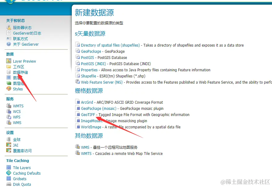 4. 新建数据存储,选择geoTiff,保存