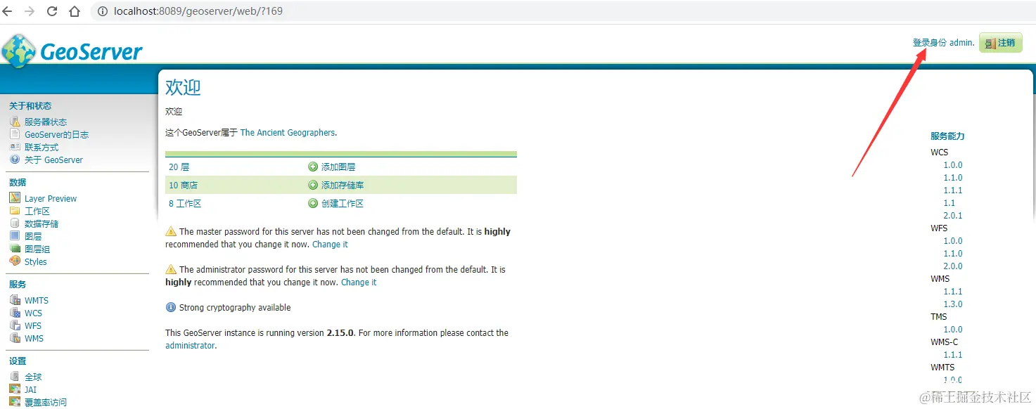 6. 打开GeoServer的网页端