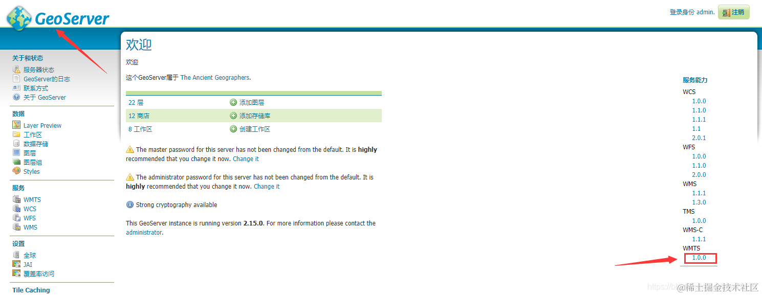 1. 点击Logo -》版本号 -》查看自己的wms地址