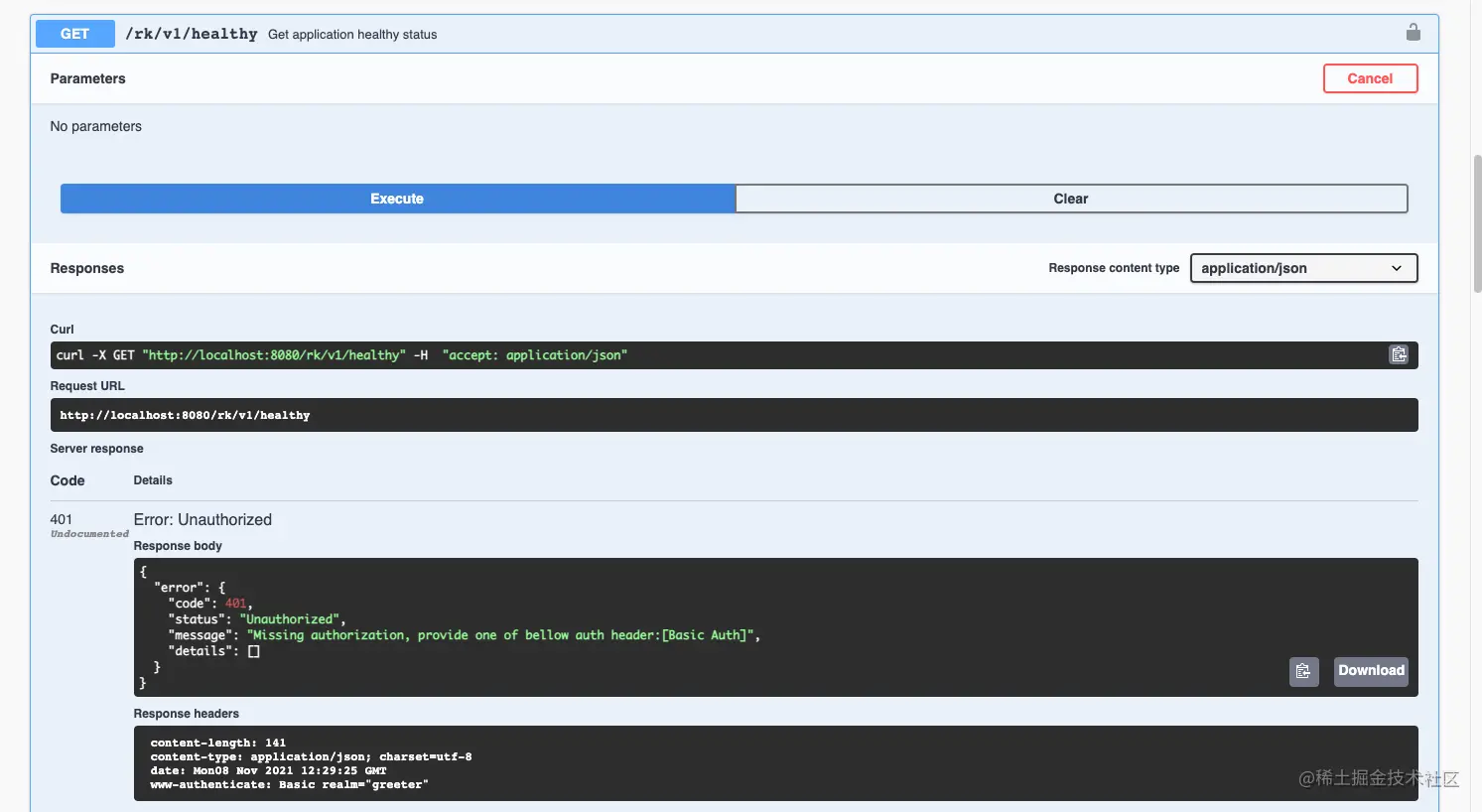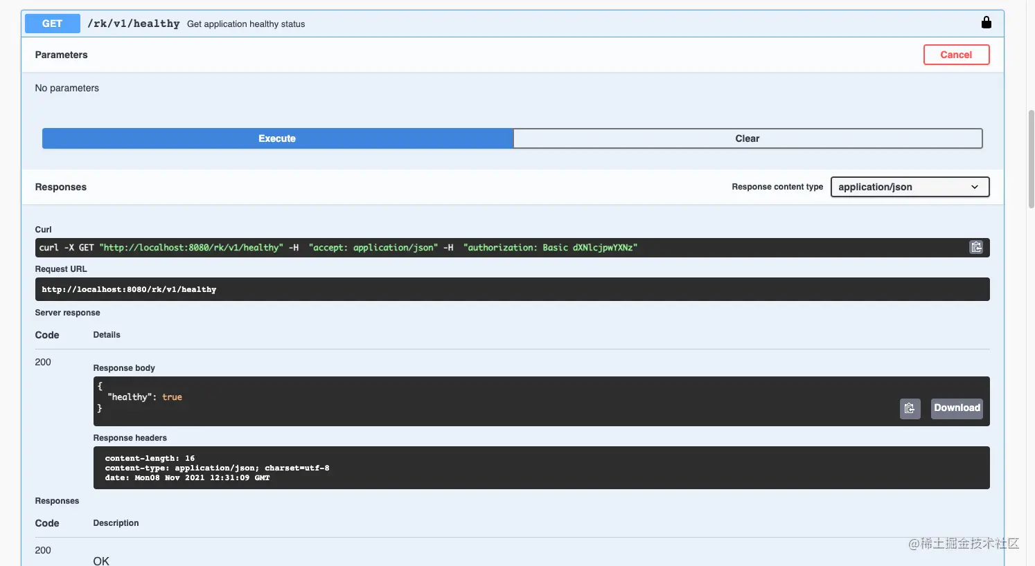 $ curl localhost:8080/rk/v1/healthy -H "Authorization: Basic dXNlcjpwYXNz"