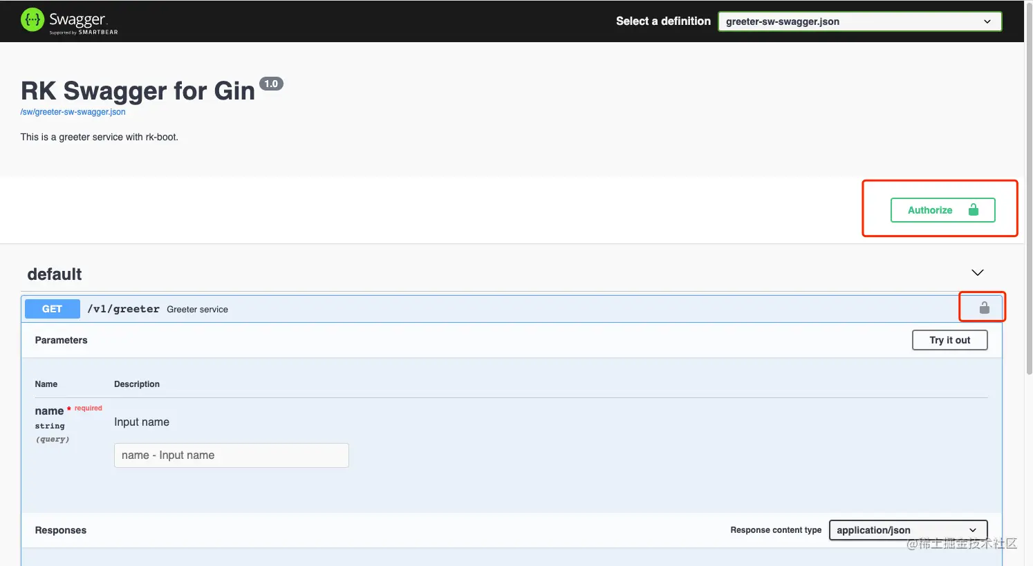 如果想要在自己的 API 中添加 Swagger 验证选项,请参考 swag security 官网,我们会在其他的例子中介绍。