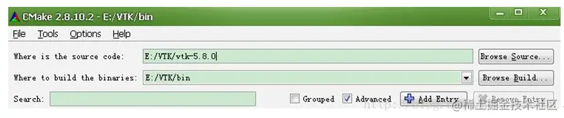 VTK_USE_GUISUPPORT:点击窗口上的Advanced,找到该选项,选上后才能激活另一个 选项VTK_USE_MFC,这样才能进行VTK和MFC混合编程。