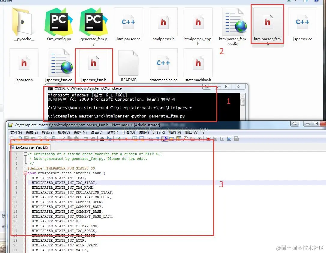 htmlparser_fsm.h和jsparser_fsm.h默认是不存在的,需要通过generate_fsm.py进行生成。但是,generate_fsm.py对于Windows系统并不友好,而且并没有直接生成*.h文件,而只是打印到界面上。