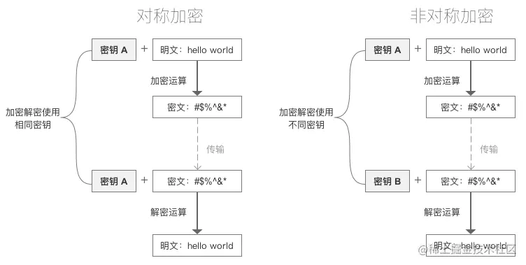 因为加密和解密使用的是两个不同的密钥,所以这种算法叫作非对称加密算法。