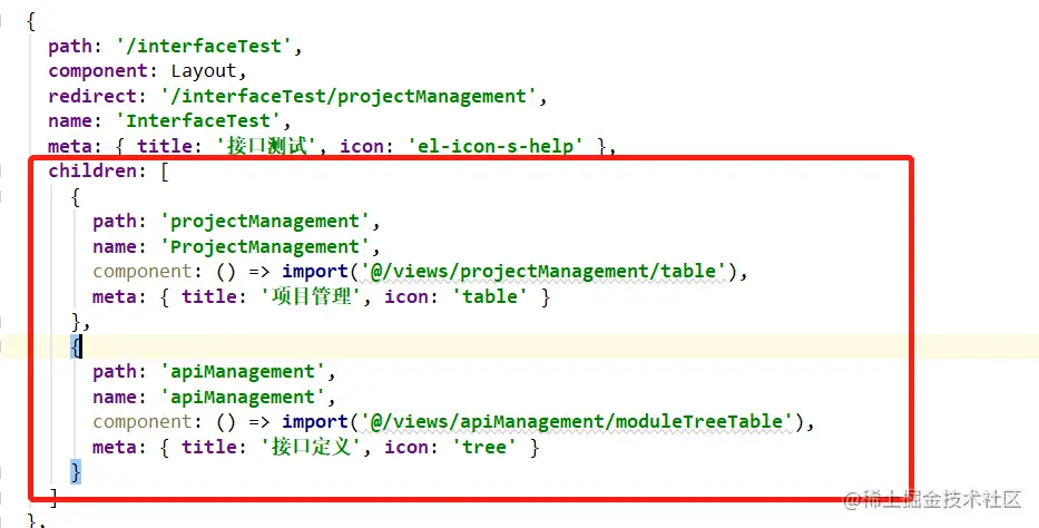 所以在路由模块里,children下面的就是子路由了。