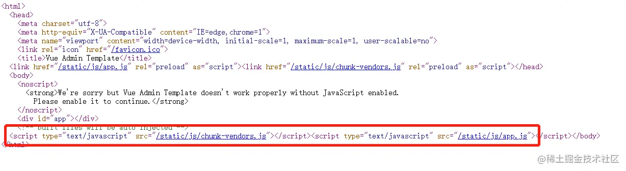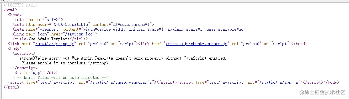 这也就是上面说的整个项目只有这 1 个 html 文件入口了,至于其他的页面内容,就是通过脚本动态的渲染出来的。