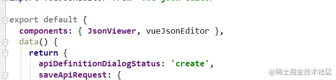 但是在使用框架的过程中,在各种页面vue组件里并没有再去创建,比如看接口定义的页面:
