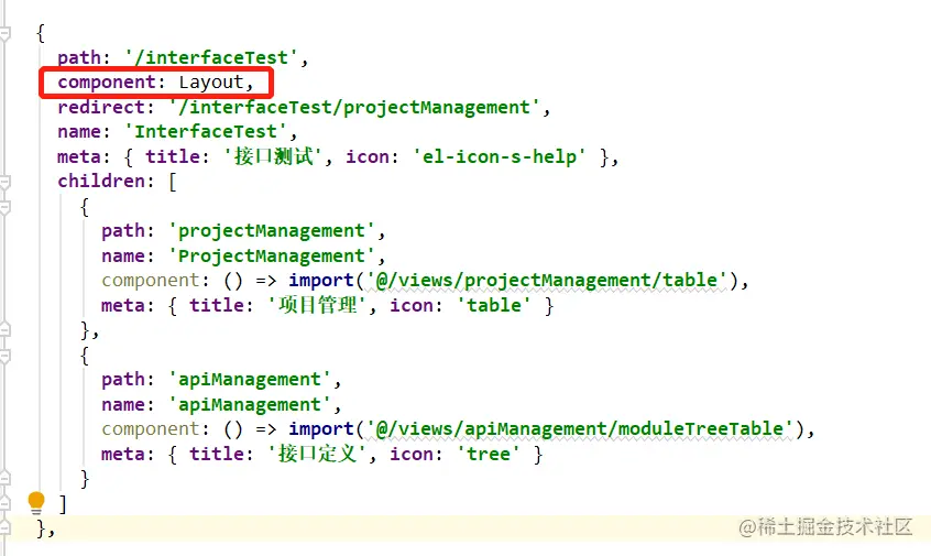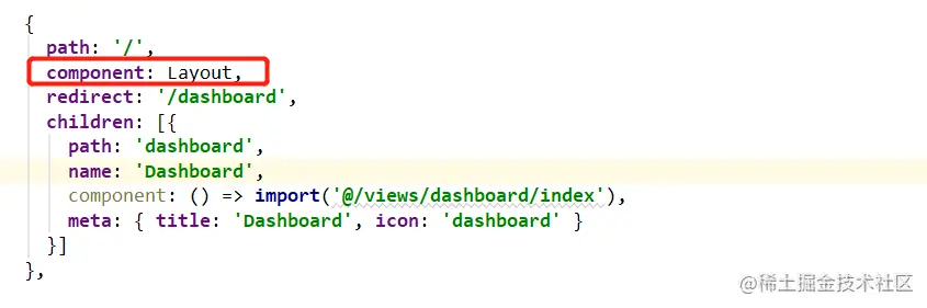除了上述几部分内容,还有一个与页面息息相关,就是 Layout 组件。在路由js文件里就已经出现过了。