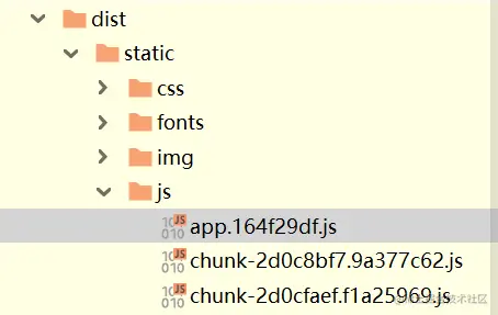 如果打包后就可以看到本地项目有了新的目录dist,这里可以找到生成的app.js文件。