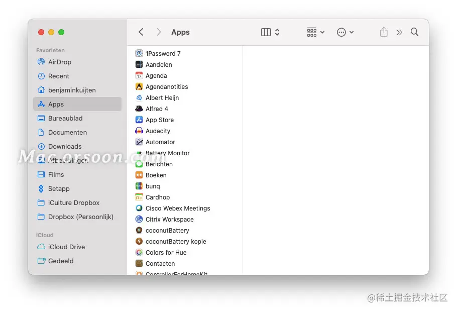 在访达中也很容易找到程序。打开 “访达”(可能通过 Spotlight)并转到Apps文件夹(cmd+shift+A)。要在文件夹中查找程序,请输入程序的首字母,访达 将尝试查找该程序。