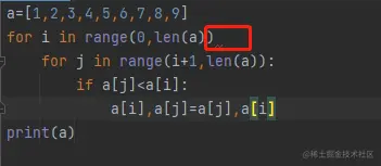 for j in range(i+1,len(a)):