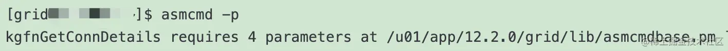 坑3:kgfnGetConnDetails requires 4 parameters at/u01/app/12.2.0/grid/lib/asmcmdbase.pm line 5704.