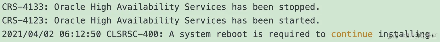 坑2:CLSRSC-400: A system reboot is required to continue installing.