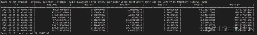 create table if not exists water.river_meter(ts timestamp, cod float, nh4n float, do float, ss float, ph float, orp float) tags(location nchar(64), id nchar(32));