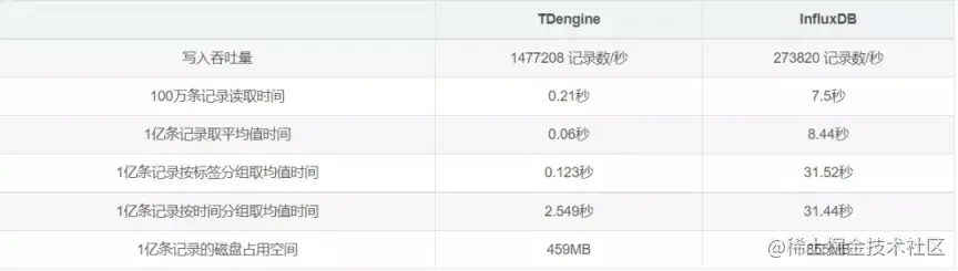 虽然接入设备繁多,但 TDengine 兼容性很强,写入、读取和统计效率也大大高于其他数据库,对比 InfluxDB 来看,测试数据显示如下: