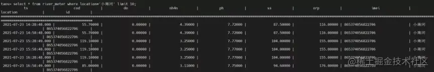 注:位置(location)为河道名称;监测点(id)为河道上某一处地方;设备标识(imei)为每款设备的唯一标识。