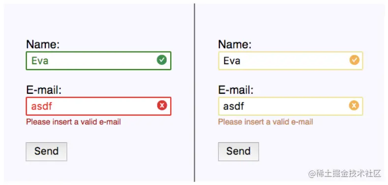 有了这个伪类,当用户使用鼠标操作可聚焦元素时,就可以做到不展示 :focus 样式或者让其表现较弱;而当用户使用键盘操作焦点时,利用 :focus-visible,让可获焦元素获得一个较强的表现样式。