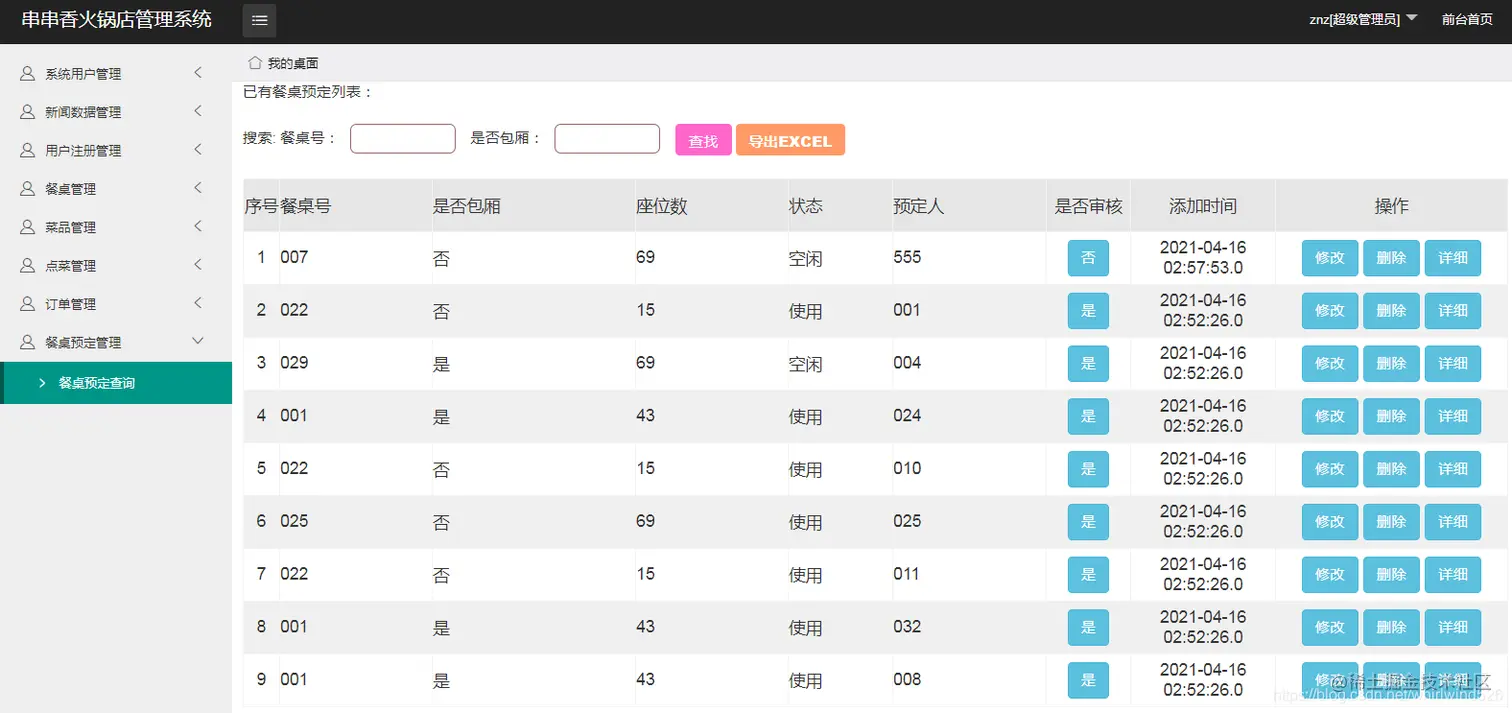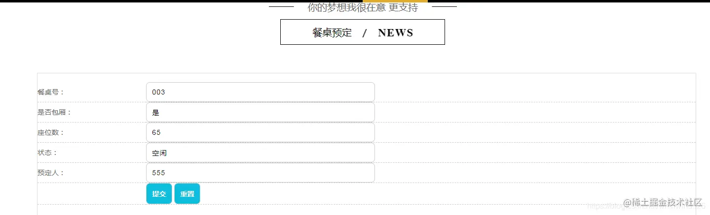 餐桌预定管理