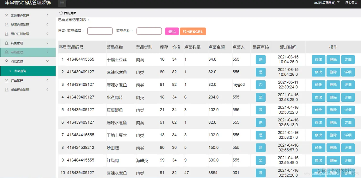 点菜查询