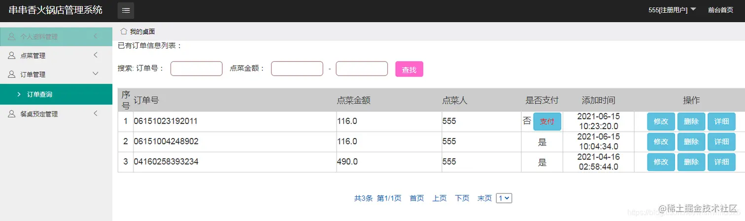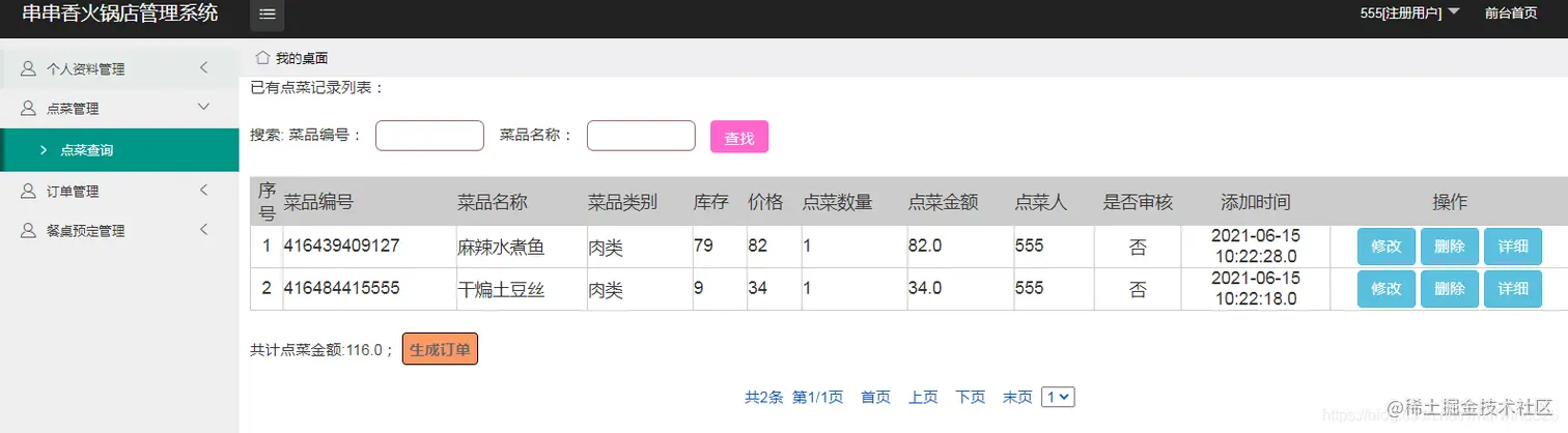 个人点菜查询