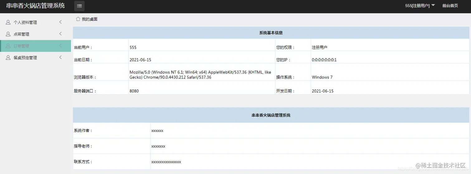 系统分为两个角色,一个是前端注册用户角色:主要实现在线订餐台、点菜、支付等操作;另一个是后台管理用户角色:主要是对系统的各种信息进行在线管理和维护。