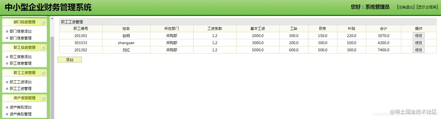 员工工资管理模块:对员工工资信息进行管理,包括员工工资的添加、修改等。