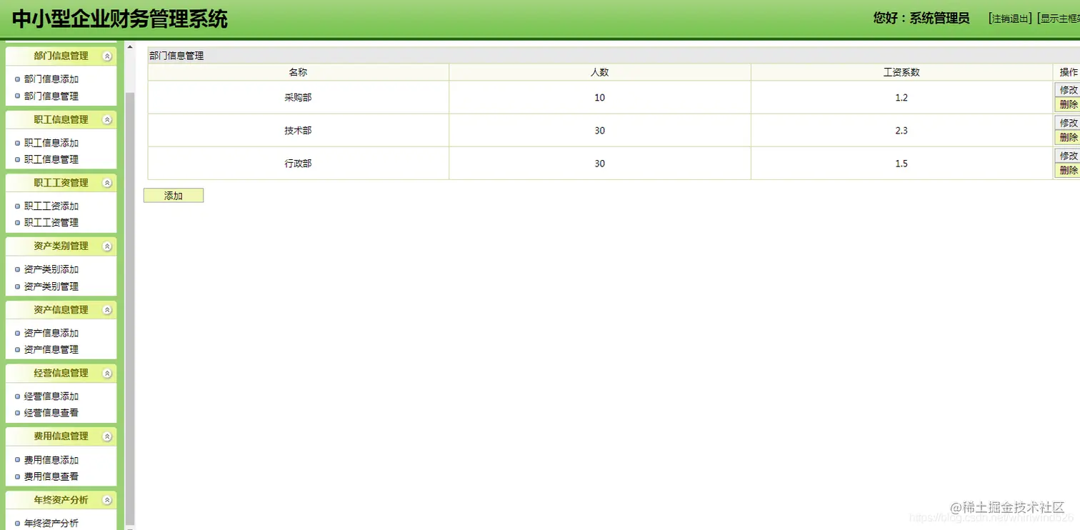 本系统主要基于Javaweb开发实现一套企业财务管理系统,主要实现企业中人财物的信息管理,系统分为两个角色,系统管理员和职工,不同的角色进入系统后可以操作实现的功能不一样,具体参看下面的系统设计说明。