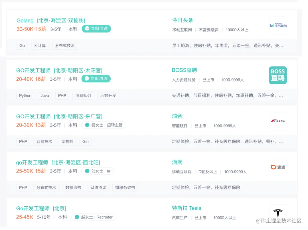 国内使用 Go 的公司非常多,字节、阿里、百度、腾讯、小米等互联网大厂赫然在列。而各个大厂中 Go 开发工程师的薪资待遇也很可观,很有市场竞争力,让你一不小心就跨进高薪阶层。