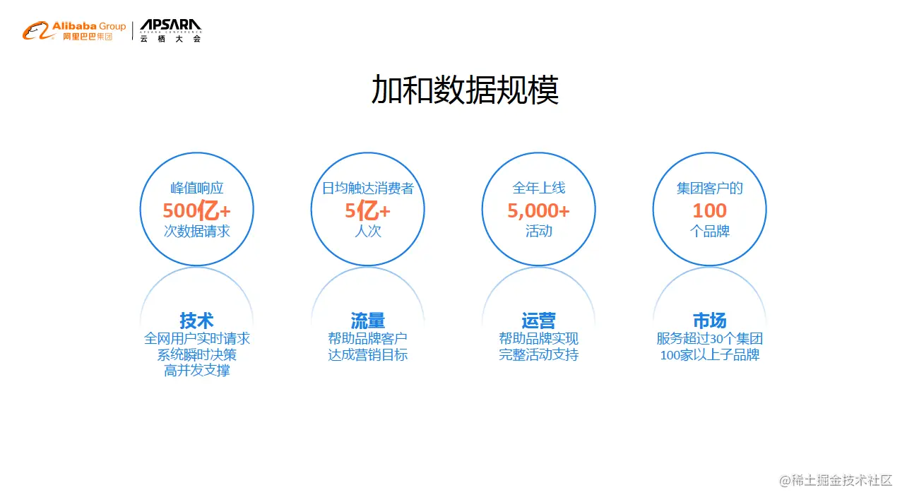 加和科技数据量级增长的非常迅速,最开始的时候流量可能还不如一个中小型的媒体,上个月峰值达到800亿的请求。数据的复杂度也比较高,每一个请求都带着相应的广告的信息,每一个请求里面有近百个相关的维度需要处理。每天日均触达的达到5亿+次,全年上线的活动5000+,服务100+品牌的客户。