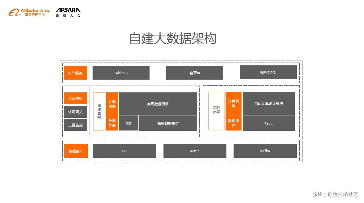 历史数据是存在OSS 上面,另外一个自研的BI 是用于展示对应的复杂数据报表,结果支持一些自主自拖拽的分析。从成本考虑,简化了数据分析的部分,利用小时级别的这种离线数据,再加上Redis 的缓存数据,去做了在线统计的模块。