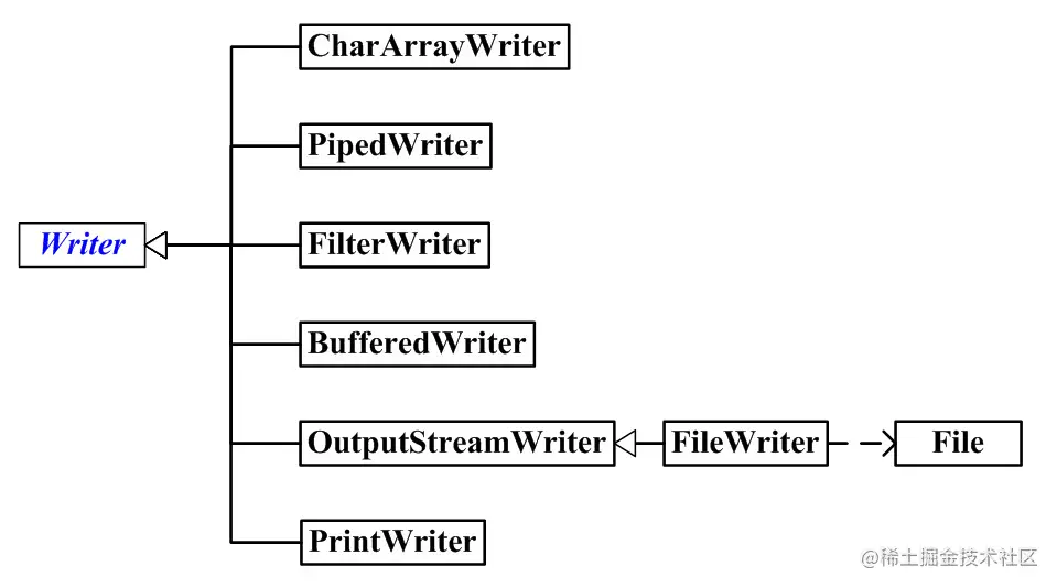 Writer类是Java IO中所有Writer的基类。子类包括BufferedWriter和PrintWriter等等。