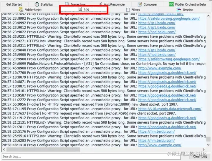打印 Fiddler 日志。