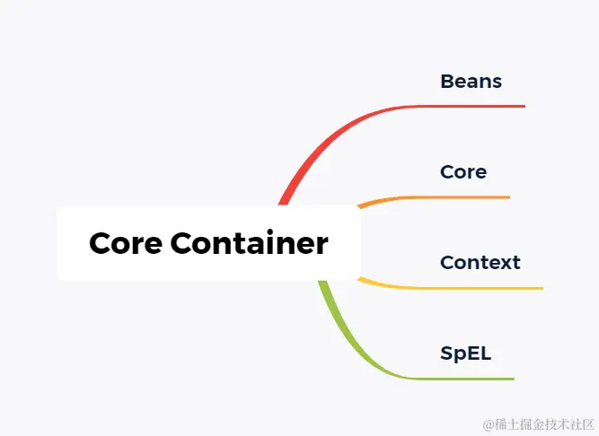 Beans:提供了BeanFactory,Spring将管理对象称为Bean。 Core :提供了Spring框架的基本组成部分,包括10oC和DI功能。 Context:建立在Core和Beans模块的基础之上,它是访问定义和配置的任何对象的媒介。 SpEL:Spring3.0后新增的模块,是运行时查询和操作对象图的强大的表达式语言。