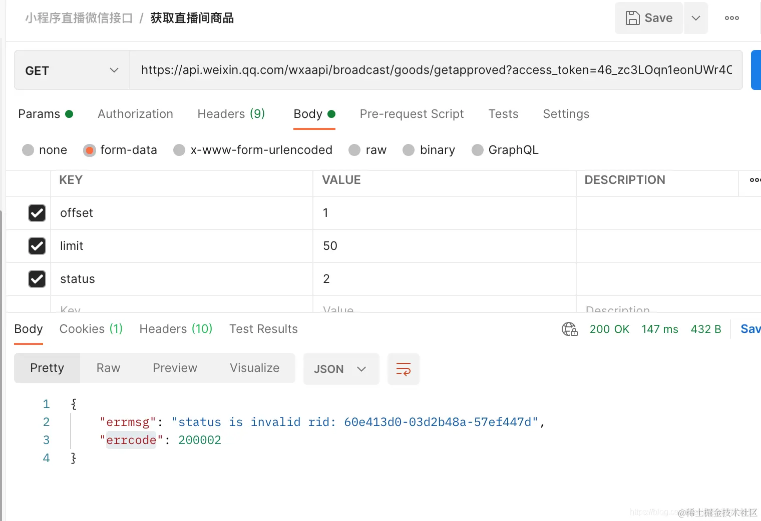 看着文档 得不到解决办法 找了找错误码 200002:入参错误