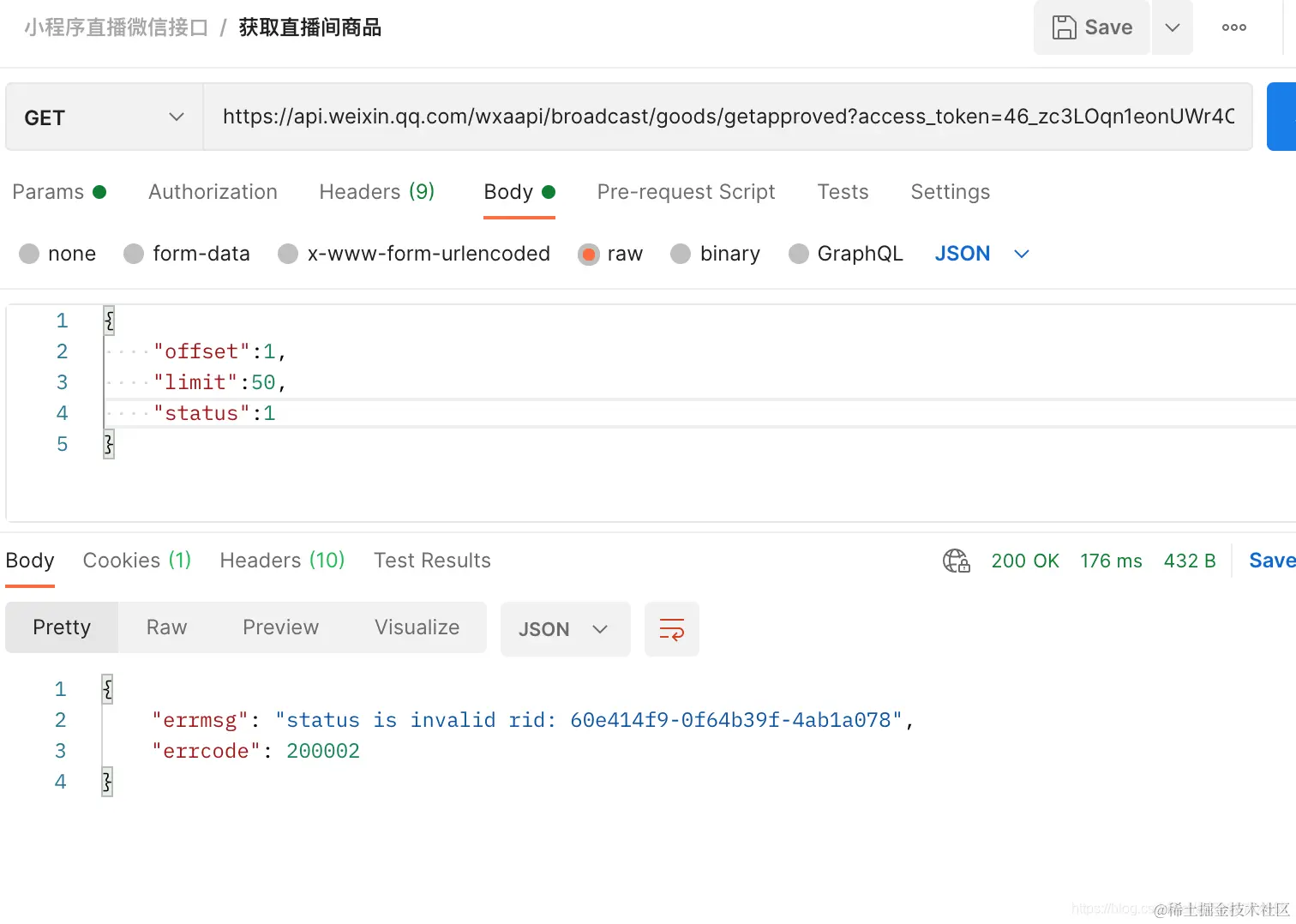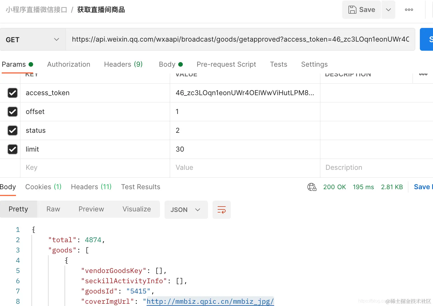 故 调用获取直播商品列表接口 请求类型采用get 传参方式为拼接形式传参