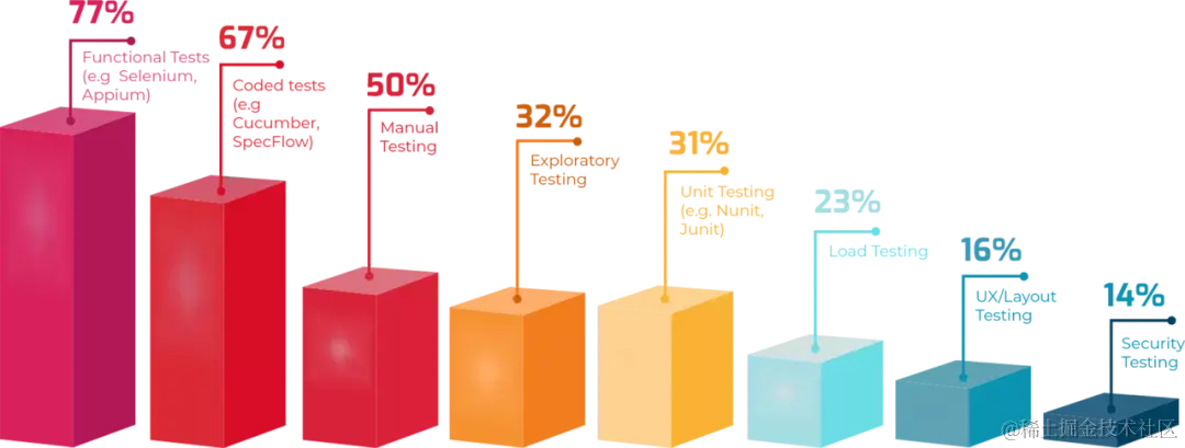 Tricentis 主导的一项全球调查为我们提供了几个有关测试趋势的重要观察。趋势表明,团队倾向于使用功能测试,这可以理解,但是手动测试也将保留下来。