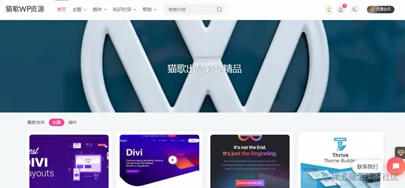 比如大家想进行SEO优化,邮件营销,产品推广等,都可以去猫歌资源网站下载不同的插件。如果想做新闻风格的、企业风格的、知识付费内容的,上面也有很丰富的主题。