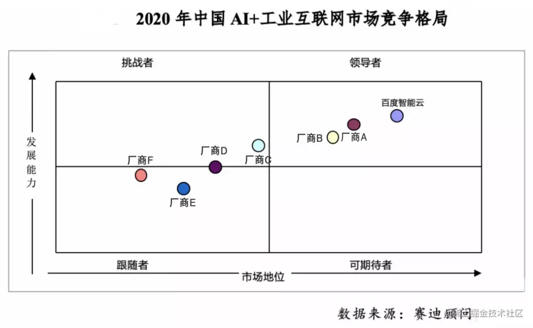 10月29日,国内权威咨询机构赛迪顾问发布《AI+工业互联网报告简报》显示:百度智能云在2020年中国 AI+工业互联网市场竞争格局中位居领导者象限,并在市场地位和发展能力双维度上均列第一。