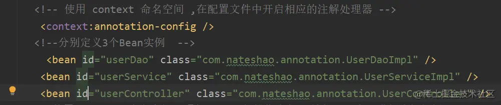 <bean id="userController" class="com.nateshao.annotation.UserController" />