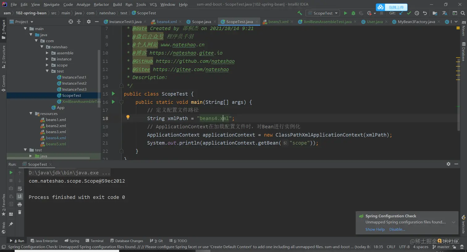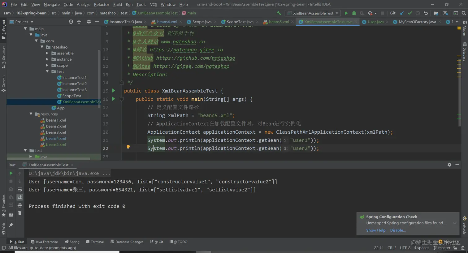 <bean id="bean1" class="com.nateshao.Bean1" />