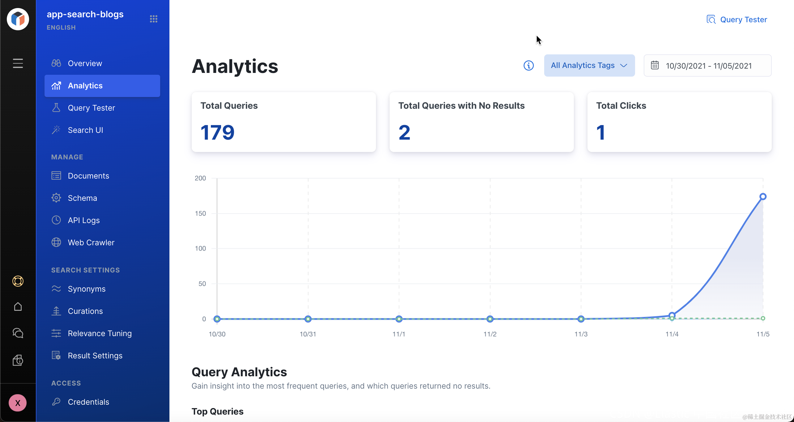 我们可以点击 Analytics 来查看我们的引擎的使用统计情况: