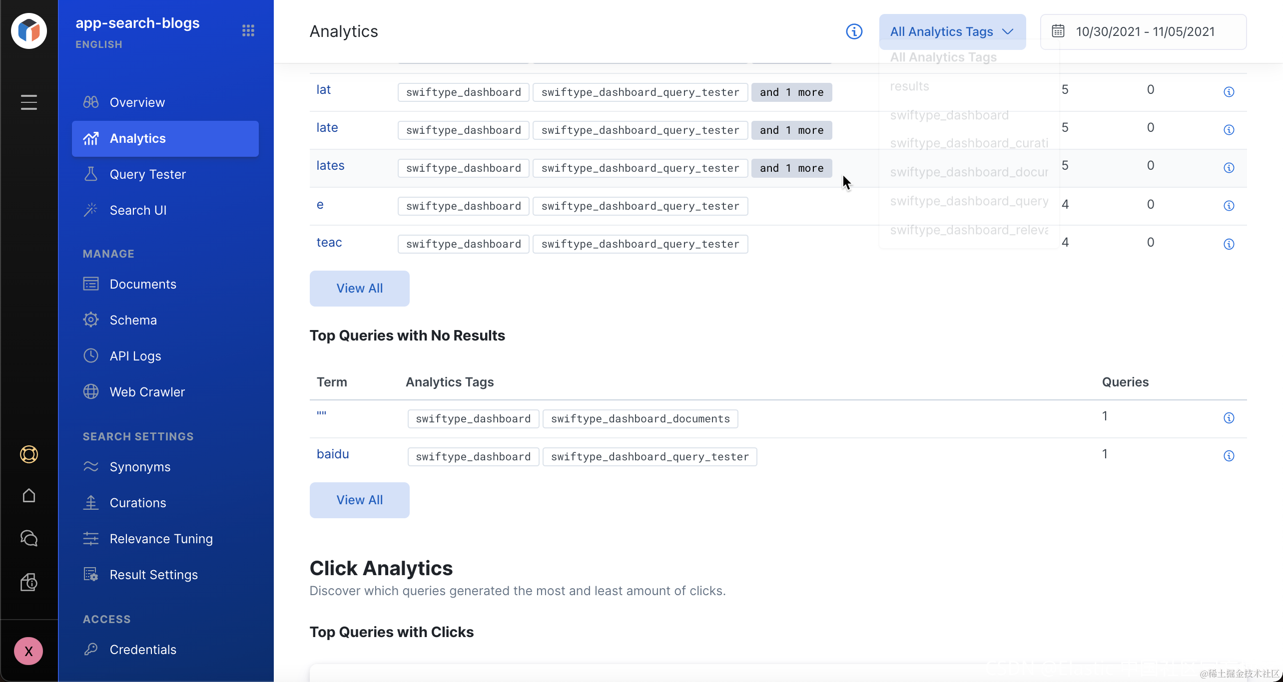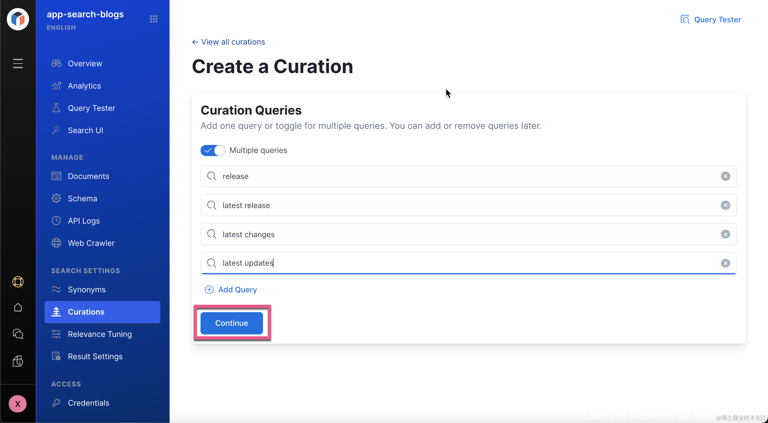 同义词,并定义 curation。我们回到 App Search 的界面: