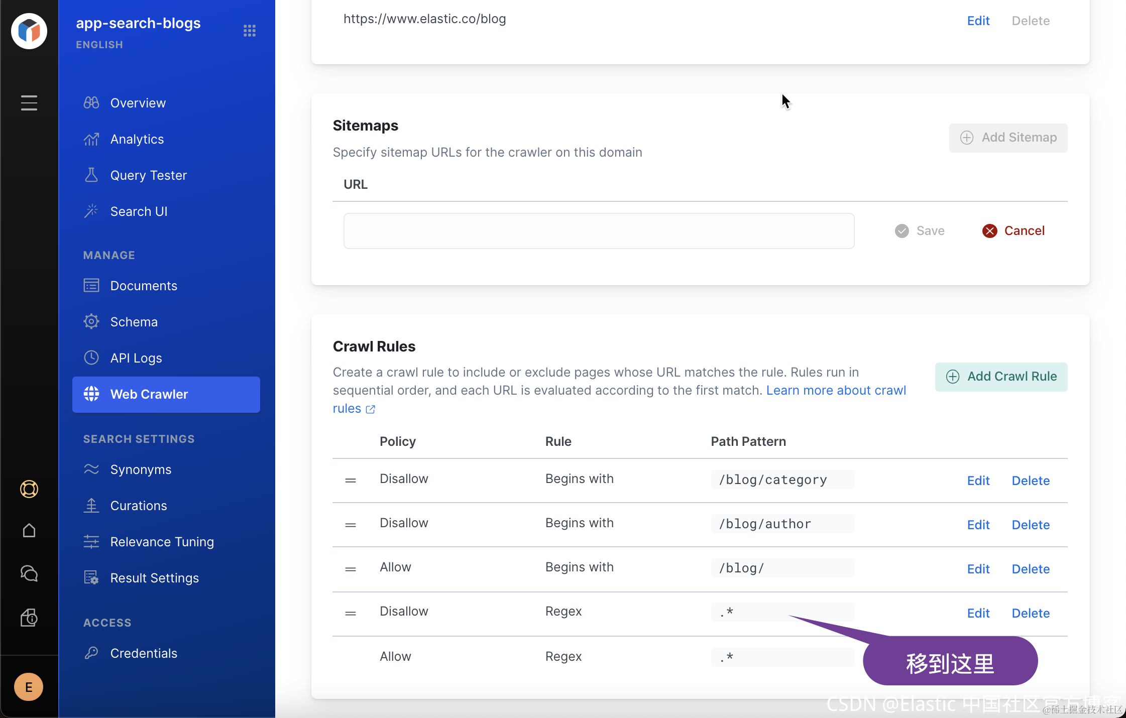 我们需要回到我们的 Enterprise Search rule 设置页面今天如下的调整: