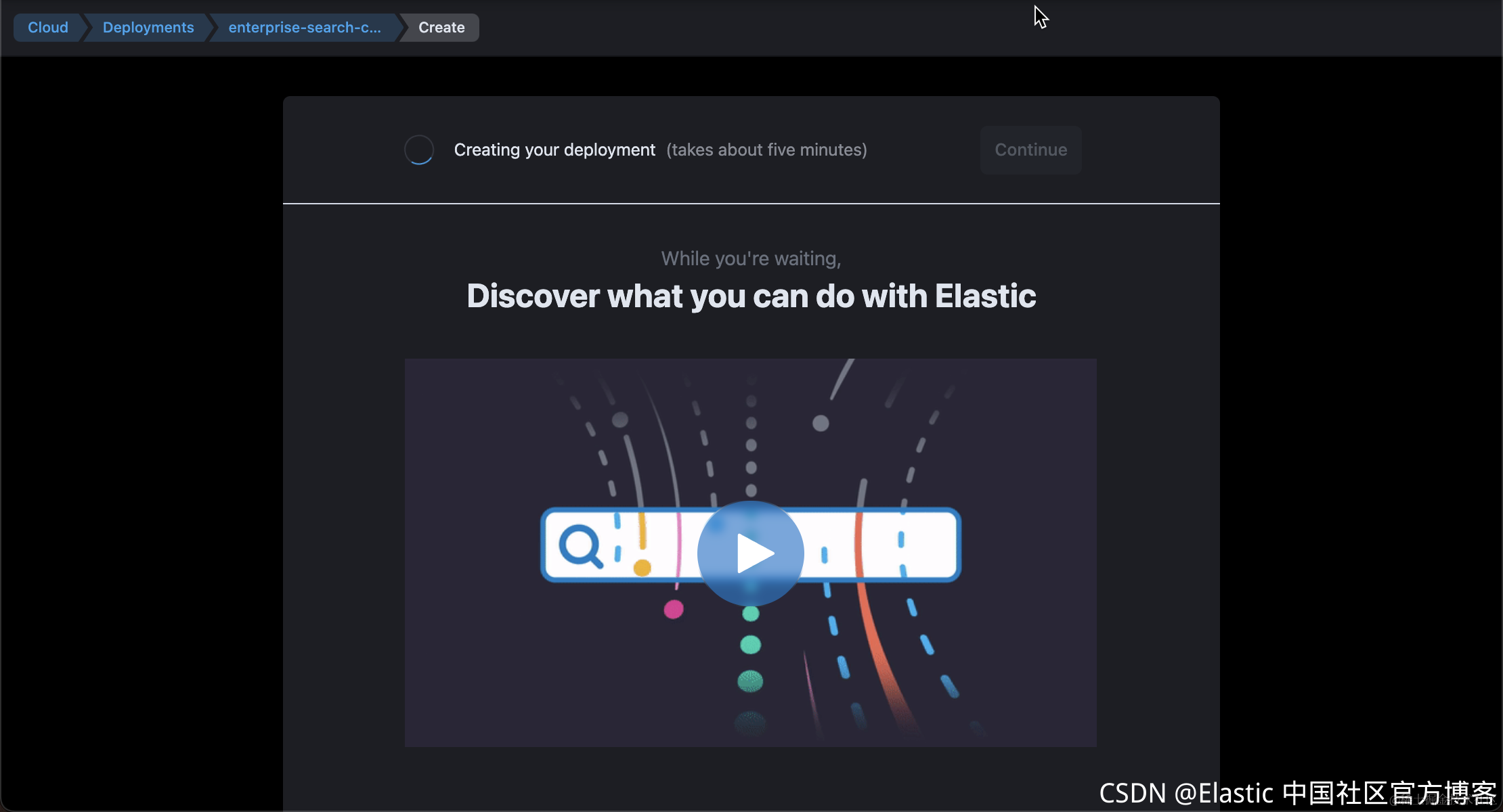 在这个章节里,我们将使用 Elastic Cloud 来创建一个 Enterprise Search 的部署。我们按照如如下步骤来进行:
